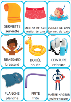 Voici plusieurs versions pour des porte-clés ou affichage du lexique de la piscine : capitale/scripte, script/cursive, 3 écritures.