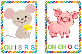 Les fiches d’encodage sont des supports visuels qui présentent des mots illustrés (par exemple : chat, fleur, soleil).