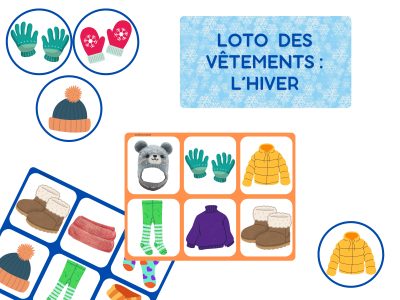 Le loto des vêtements d’hiver est un jeu idéal pour travailler le lexique de l’hiver tout en développant l’attention et l’observation. Bonnet, manteau, écharpe, moufles… autant de mots à manipuler en s’amusant, en atelier ou à la maison.