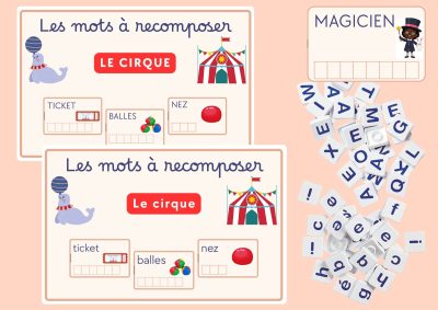 Voici une activité simple et efficace pour travailler le langage écrit, la reconnaissance des lettres et la construction de mots autour du thÚme du cirque.