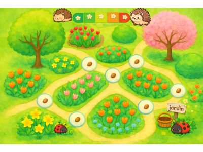 Panique au jardin ! est un jeu coopératif sur le thème du printemps qui permet de développer le vocabulaire tout en encourageant l’écoute, la prise de parole et l’entraide grâce à des actions ludiques.