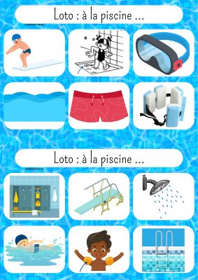 2 lotos sur le thème de la piscine pour enrichir le vocabulaire tout en développant attention et observation, à jouer en classe ou en famille.